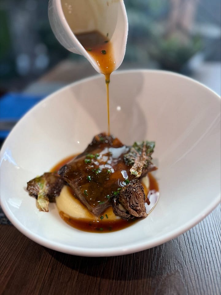 Michelin doesn’t give stars in Sarasota now, but Buchanan hopes it’ll happen someday: “We aspire to create these types of dishes and experiences … We are the only place in the world (that I know of) where you can receive a Michelin star-quality type of meal while also servicing or buying a Michelin tire.”